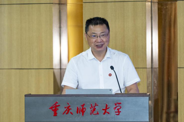 重庆师范大学校长王国胤教授出席开幕式并致辞。王国胤代表学校对参加本次研讨会的各位贵宾表示热烈欢迎与衷心感谢,并简要介绍了学校的发展历程和办学成果,重点介绍了我校在人工智能和数字化技术时代背景下,在学科建设、科学研究和人才联动发展中,大力促进学科交叉融合、不断探索科研新范式的具体做法。华中师范大学赵蕴杰教授代表组委会致辞,介绍了本次学术研讨会筹备及举办的重要性。