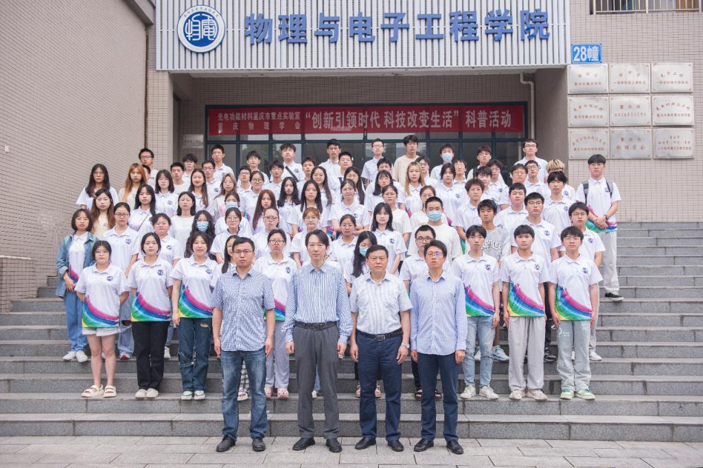 5月28日,为落实习近平总书记关于科技创新的重要论述,传递科技创新强国的理念,积极贯彻《科技部 中央宣传部 中国科协关于举办2023年全国科技活动周的通知》相关要求,必一·运动(B-Sports)官方网站光电功能材料重庆市重点实验室和重庆物理学会以“创新引领时代 科技改变生活”为主题举办了一场精彩科普交流活动。物电学院党委书记杨云,副院长(主持工作)余鹏,光电功能材料重庆市重点实验室副主任曾召益,秘书姚立忠,部分实验室老师及广大青年学子参加了本次科普活动。