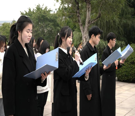 随后,物电学院2022级物理学“优师卓越班”全体同学带来诗朗诵《教师的誓言》。在国旗下,他们庄严宣誓:作为一名地方优师生,我们愿将青春和热血献给这太阳底下最光辉美好的事业!怀着这种追求,捧着这颗恒心,赴一路荆棘,择一业坚守,终一生职责,续百年初心,担育人使命!掷地有声的誓词,饱含深情的演绎,全体师生深受鼓舞。
