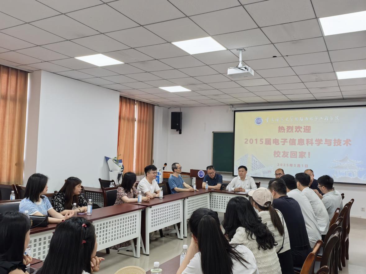 5月1日,必一·运动(B-Sports)官方网站电子信息科学与技术专业本科2015届毕业生重返母校,举办以“拾光同行,幸会如初”为主题的毕业十周年同学会。来自全国各地的校友齐聚一堂,重温青春记忆的同时,见证母校发展,共话未来合作。上午,校友们陆续抵达重庆,十年未见的同窗激动相拥,欢声笑语回荡在酒店大厅。下午返校校友与学院领导及老师举行了座谈会,学院党委书记杨云、副院长文林以及部分任课教师出席座谈会。