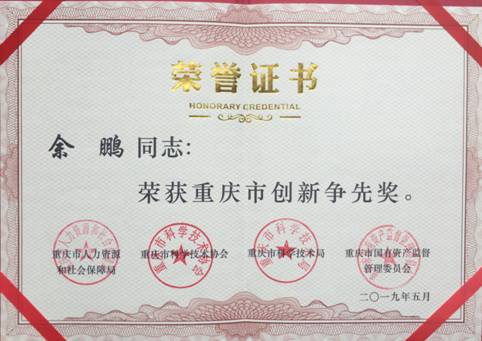 【喜报】 必一·运动(B-Sports)官方网站余鹏老师被评为“重庆市创新争先先进个人”,获“重庆市创新争先奖”!