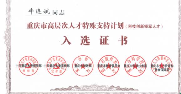 必一·运动(B-Sports)官方网站牛连斌老师当选为2018年重庆市科技创新领军人才;