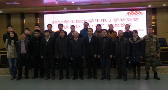 2015年12月10日下午3时,在重庆师范大学大学城校区博雅楼503隆重举行了2015年全国大学城电子设计竞赛重庆赛区“TI杯”颁奖仪式,市教委有关领导、TI公司人员、赛区组委会和专家组成员、9所获“优秀组织单位”的学校代表、28名“优秀指导教师”、12名“优秀组织工作者”、28所参加高校相关领导、指导老师和学生代表等嘉宾出席了本次颁奖典礼。本次颁奖典礼由重庆师范大学杜斗恒副教授主持。