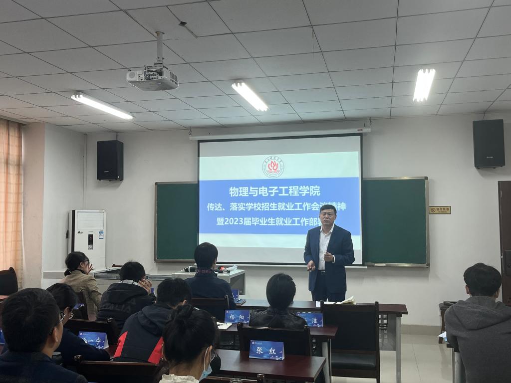在针对全院教师的第二轮就业工作部署会中,党委书记杨云传达了学校招生就业工作会相关精神,针对毕业生就业指导提出四“提”:一是“提量”,全院教师深入挖掘资源,提供充足就业岗位;二是“提效”,针对考研群体从报考-复习-联系导师-调剂,确保研究生考取率、考研质量稳中有升;三是“提质”,分专业分类别对毕业生开展一对一就业指导,确保就业质量;四是“提速”,要有紧迫感,全院就业工作必须前置,越早开展越好。