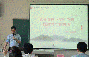 2023年4月15日上午,重庆师范大学教授、重庆师范大学附属中学书记张忠俊做了题为《素养导向下初中物理深度教学的思考》的专题讲座。