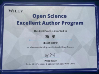 图2:杨英老师荣获“Wiley威立中国开放科学2023年度作者”奖