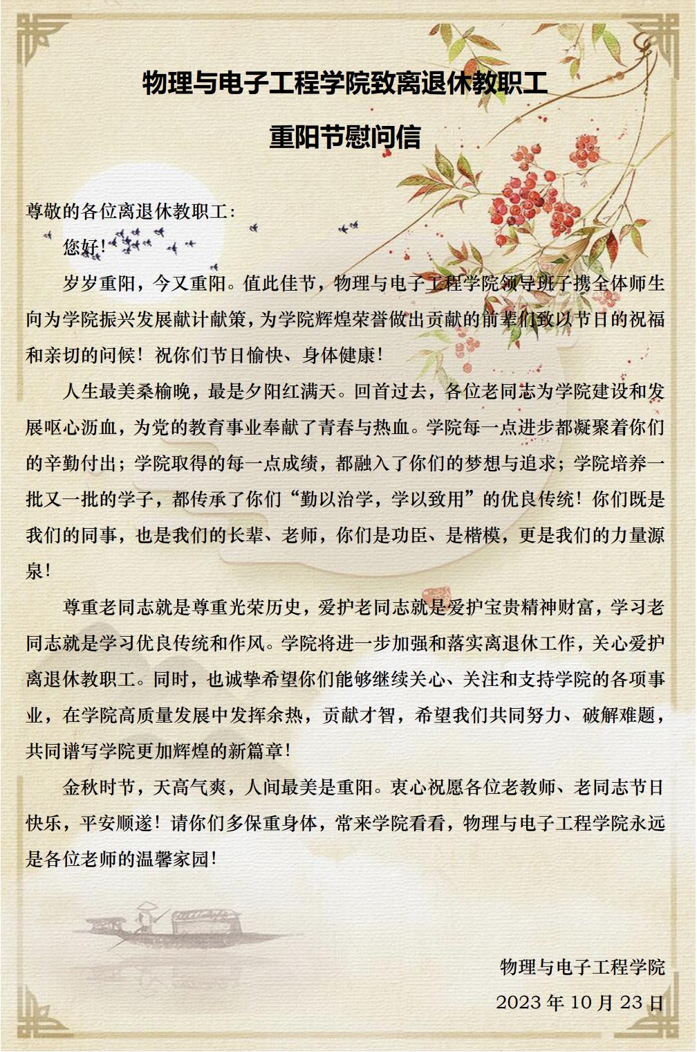必一·运动(B-Sports)官方网站致离退休教职工重阳节慰问信