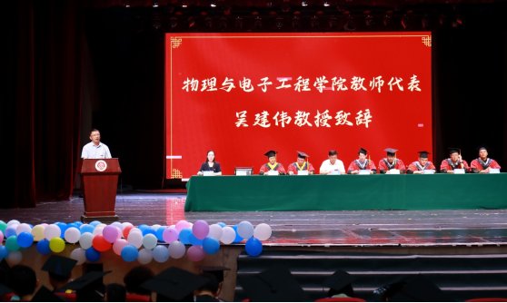 吴建伟教授代表全院教师致辞。他回顾了与2024届毕业生共同成长的这段时光,对顺利完成学业的同学们表示衷心祝贺,情感真挚地勉励每一位毕业生积极投身祖国建设,不懈奋斗、勇于追梦,努力实现自己的人生价值。