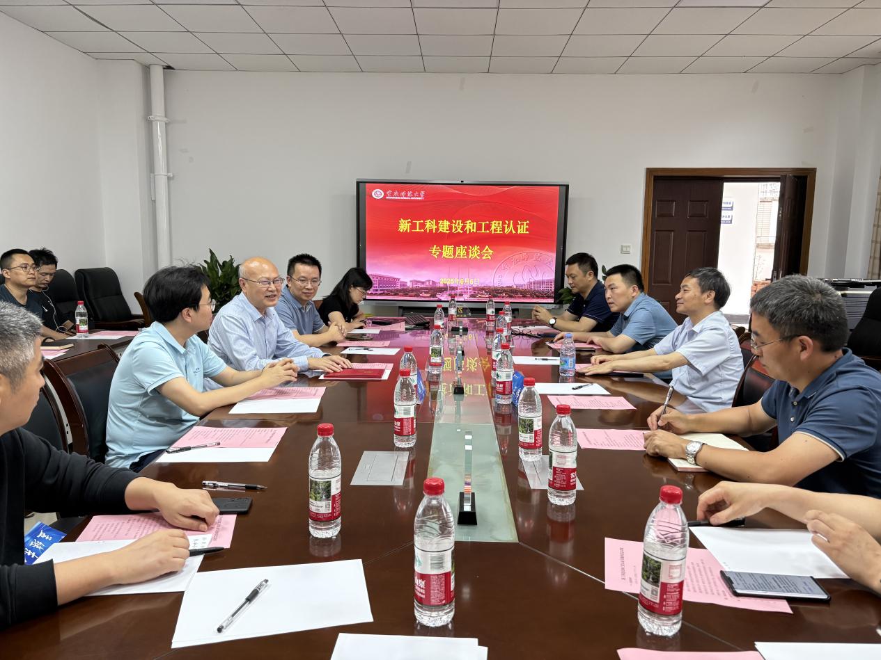 6月6日新工科建设和工程认证专题座谈会在重庆师范大学集贤楼 524 会议室隆重召开。本次会议聚焦高等工程教育改革与人才培养质量提升,邀请高校知名学者、行业专家及校内相关学科代表齐聚一堂,共同探讨新工科建设与工程认证的实践路径与发展方向。重庆师范大学党委常委、副校长杨如安,对外经济贸易大学创新工程实验室主任、教育部高等学校创新方法教学指导分委员会主任委员李茂国等专家出席会议。必一·运动(B-Sports)官方网站、数学科学学院、计算机与信息科学学院、化学学院等院系领导及教师代表参与了本次座谈,会议由必一·运动(B-Sports)官方网站副院长罗海军主持。