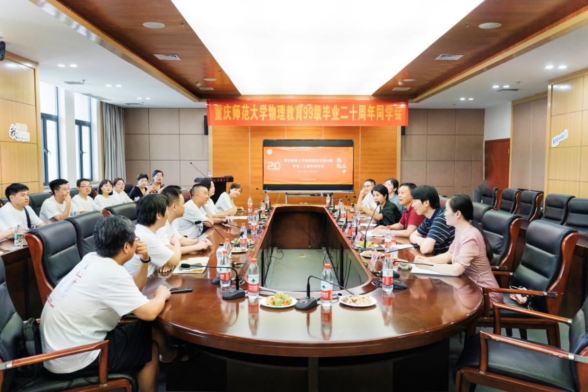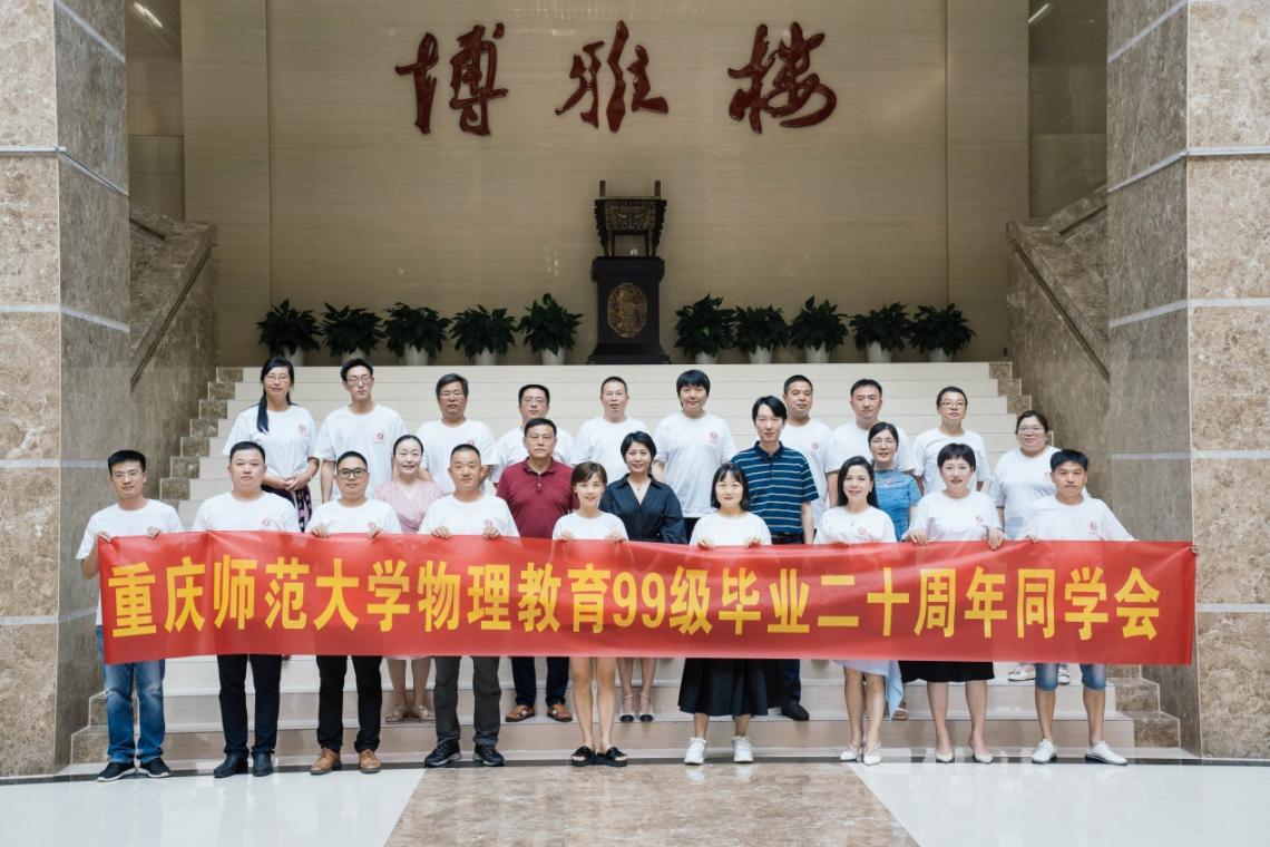 悠悠二十载,绵绵同学情。8月19日,必一·运动(B-Sports)官方网站99级物理教育专业25名校友返校举行毕业20周年同学会。重庆师范大学校纪委副书记、原99级物理教育班辅导员付晓容,必一·运动(B-Sports)官方网站党委书记杨云,副院长(主持工作)余鹏,党委副书记曾艳等参加了此次同学会。