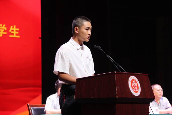 随后,2021级新生代表陶佳豪上台发言,表示他满怀斗志,一腔热血,对未来的大学生活充满了期待。他希望同学们能够不辱使命,继续传承物电人“勤奋踏实,励志创新”的精神,在未来的生活中用凌云之志,点亮未来。