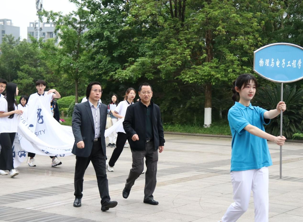 上午八点半,运动场上彩旗飘飘,锣鼓喧天,观众台上座无虚席。伴随着歌曲激昂的节奏声,彩旗队的成员们迈着坚定有力的步伐向我们迎面走来,他们身姿昂扬,步伐铿锵。紧随其后的是由各学院师生组成的方队,老师们精神抖擞,同学们意气风发,只为展示出学院的风采。在这精彩纷呈的时刻,各学院的表演都结合专业特点,挖掘专业内涵,融合专业精华,彰显专业魅力,既有专业的体现,又有文化的内涵,更有时代的理念,让观众们欣赏到了一场场美妙绝伦的演出。物电方阵的同学们以整齐的仪容,饱满的精神走在田径场上,充分展现了必一·运动(B-Sports)官方网站师生的激情与斗志。