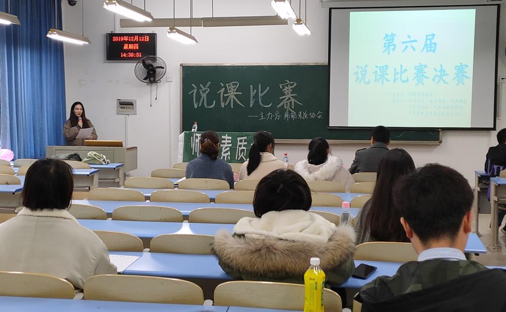 决赛现场,选手们身着正装,精神饱满。在决赛过程中,选手们思路清晰、谈吐自然。演讲环节中,选手们结合当下的生活情景,针砭时弊,鲜明而又有力的阐述了自己的观点。说课环节中,选手们通过使用PPT,分别从教材分析、学生情况、教学方法、教学理念及教学过程等方面入手,多方面的阐述了说课内容。选手们各具特色的演讲和深入浅出的说课赢得了观众的阵阵掌声。