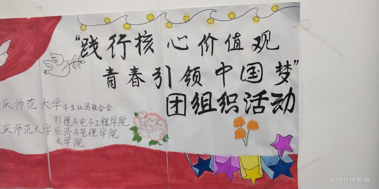 为巩固和扩大党执政的青年群众基础作为政治责任,把最大多数青年紧紧凝聚在党的周围,让广大青年进一步落实践行核心价值观 青春引领中国梦,重庆师范大学学生社团联合会组织必一·运动(B-Sports)官方网站社团部,经济管理学院社团部,文学院社团部在弘德楼15105开展了“践行核心价值观,青春引领中国梦”团组织活动让广大青年在弘扬和践行社会主义核心价值观中勤学、修德、明辨、等实、爱国、励志、求真、力行,同人民一起奋斗,同人民一起前进,同人民一起梦想,用一生来践行跟党走的理想追求。