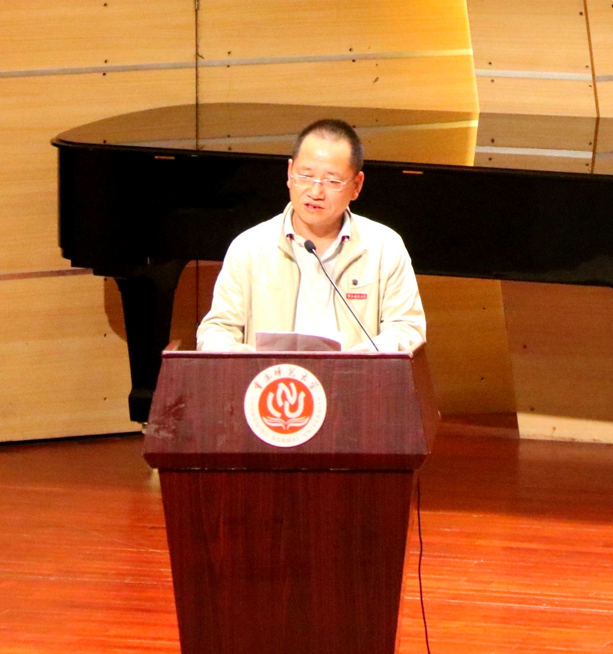 随后,新生代表王笑然同学在表达了自己对大学生活的期待的同时号召了同学们脚踏实地、勤奋学习,在面对来临的新时代时勇敢肩负起新时代的重担。最后,院长崔玉亭教授上台讲话。