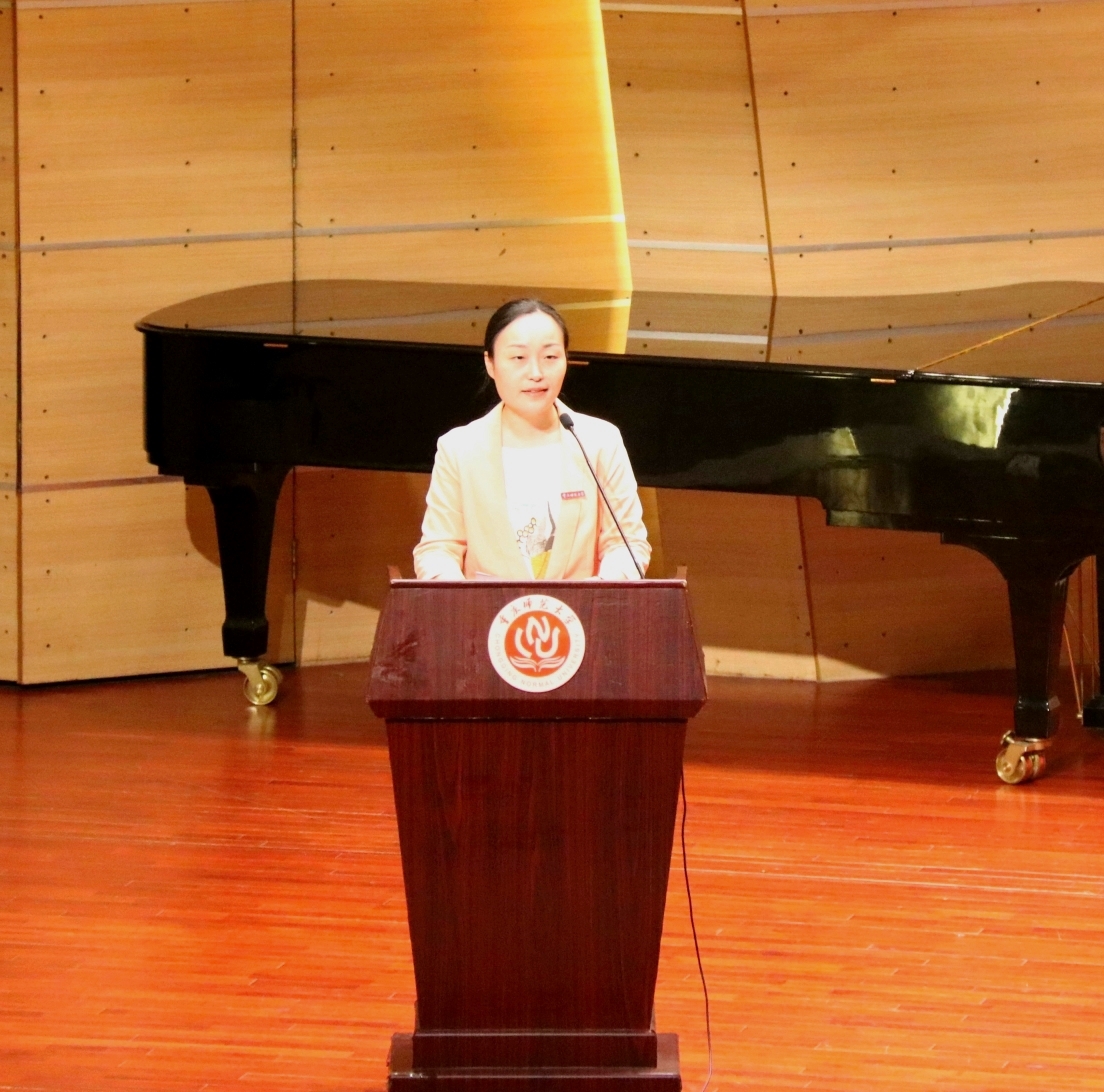新生开学典礼在大家的期待下拉开了序幕。首先,学院教师代表张丁可教授上台致辞。张丁可教授和同学们聊了“珍惜”这个话题,她表示希望同学们能够珍惜现有的学习时间与机会,珍惜物电学院、爱上物电学院,珍惜健康,养成良好的习惯,保持健康的体魄,同时要珍惜缘分,珍惜师生情、同学情与校友情。
