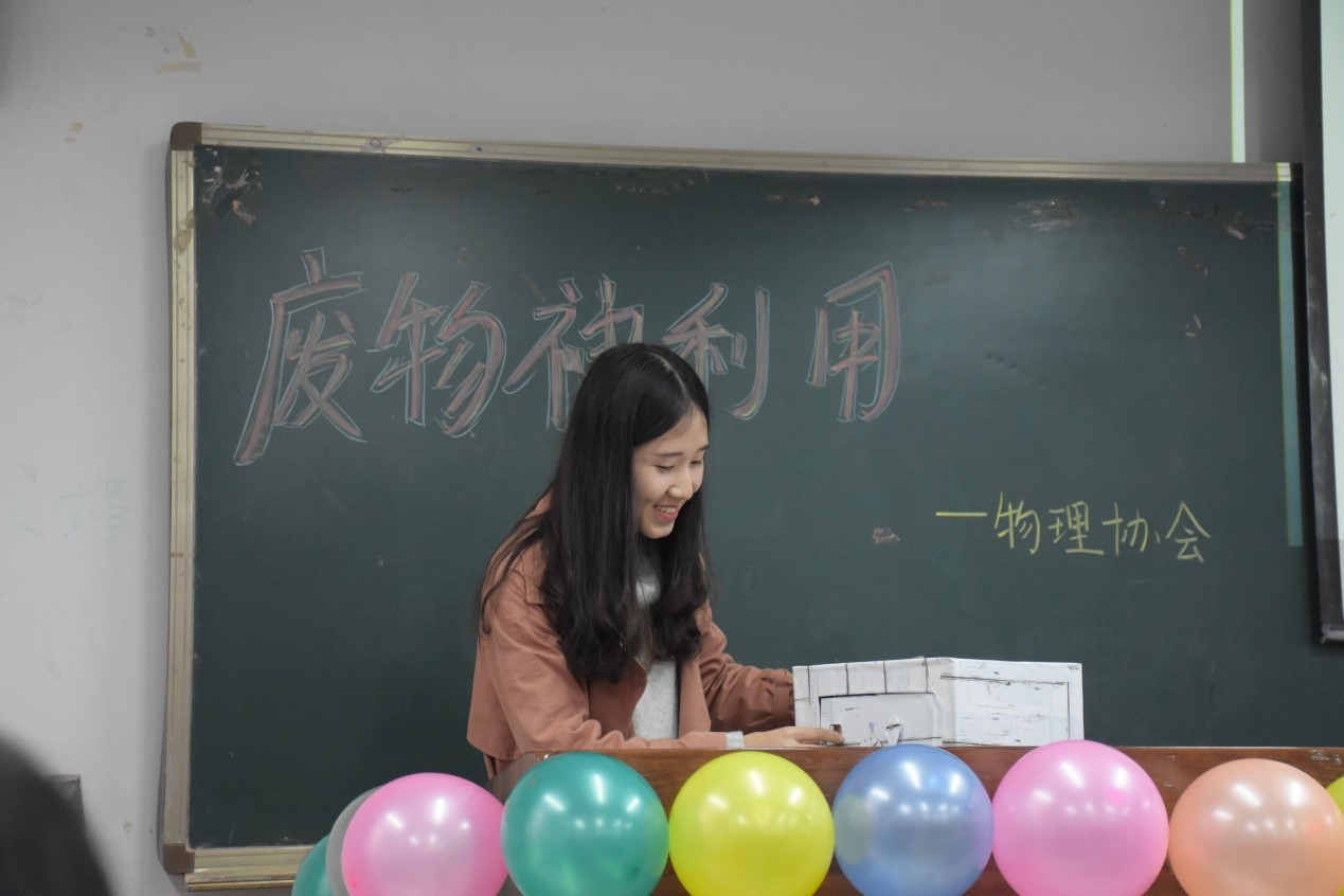 当人们庆祝20世纪人类发展所取得的累累硕果时,地球母亲带着生态的重负与创伤迈入了一个新的世纪。为增强我校广大学子的环保参与意识、环保公德意识、环保经济与科学意识,2017年11月30日物理协会在弘德楼14206举办了“废品神利用”比赛的最后阶段--作品展示。