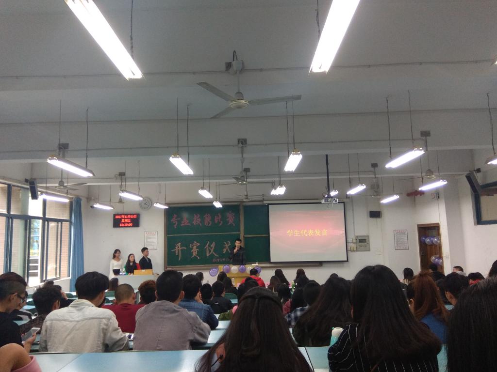 专业技能竞赛由电子科技竞赛和师范生技能大赛组成,其中师范生技能大赛,由三笔字书写、主题演讲、多媒体课件制作、高考试题解答、教具制作、模拟课堂教学六个部分构成。非师范的电子科技竞赛由初赛的创意书递交和决赛的成品检测两轮构成。活动开始时由主持人介绍回顾播放往届比赛视频。接着是指导老师代表罗光教授发言,为选手进行赛前总动员。然后就是往届师范生技能大赛学生代表唐越、往届电子科技大赛学生代表石林分享参赛感悟,交流学习经验。最后是必一·运动(B-Sports)官方网站团总支书记李青松老师精彩致辞。