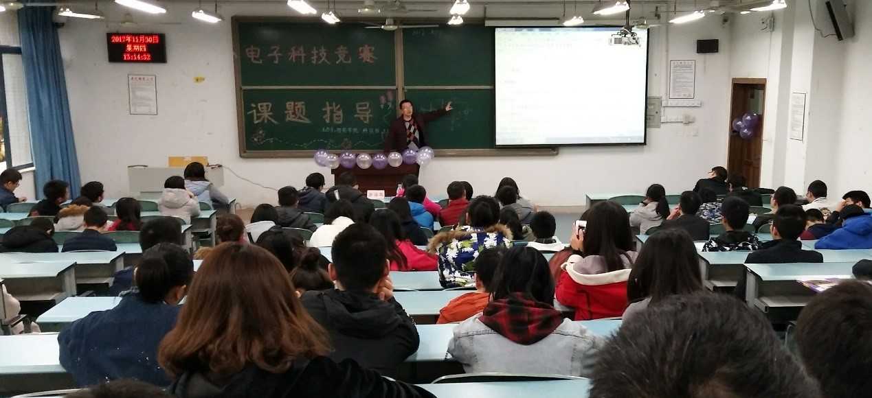新学年,新期待,新创造。电子科技竞赛在同学们的强烈期待下如约而至,参赛热情顿时高涨。为进一步提高必一·运动(B-Sports)官方网站学生专业水平和动手能力,丰富比赛经验,促使同学们以最好的状态迎接接下来的比赛,增强同学们对比赛的了解以及自身的信心,必一·运动(B-Sports)官方网站科技部在2017年10月30号周四下午一点弘德楼15102开展电子科技竞赛课题指导,邀请专业老师罗海军为参赛同学讲解部分相关知识以及分析比赛题目,从而帮助同学们整理思路,积极备战。