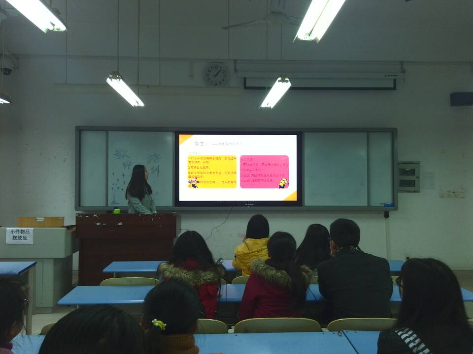 活动伊始,张珊珊向同学们讲述了一些基本的师范生礼仪,并分别就男女生着装、仪态、台风等的不同规范和要求进行讲解。随后,师能素质协会会长高曼曦做了进一步补充,具体分析了前一天的师范生说课大赛中某些表现不足的地方和相关问题。她提到,参加比赛,一定要对自己所做的课件充分熟悉才能避免在台上怯场,而且讲课中板书的书写也藏有玄机。接着,高曼曦详细讲解了说课和讲课之间的区别,并向会员们提出了相关建议,比如,在每一次的练习讲课时,可将讲课过程录制成视频,并在后期再反复琢磨用以提升自己的师范生技能。同时,她也期待成员们能够在未来的日子里能够在师范生技能上更上一层楼。
