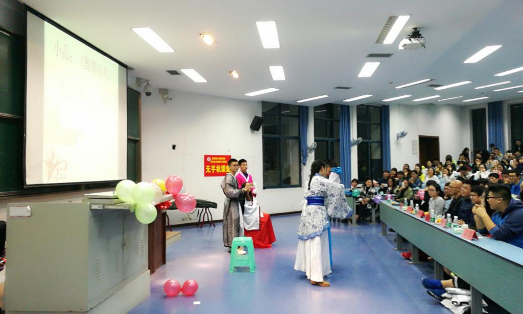 活动以一段青春洋溢的舞蹈开场,在宣布本次团组织活动正式开场后邀请了文学院和物电学院两院的社团部部长分别致辞,她们表示组织并参与这样极具民族精神的活动是非常有意义的,也希望在本次活动中能够让同学们在缅怀历史的同时更加坚定初心实现自己的梦想。随后,紧锣密鼓地进行了游戏击鼓传‘花’,主办方别出心裁地以机密文件代花,在强烈的节奏冲击下,同学们深刻感受到了先辈们当年的危机急迫感与责任使命感。之后的情景剧《中华礼仪之美》以其轻缓悠扬的筝乐和形象地表演为大家展现了中华文明礼仪的美感,彰显了中国文化的唯美与独特。整场活动有奖竞答、互动游戏、节目表演相互穿插,并在热烈的掌声中结束,而其背后的精神却在向参与者娓娓道来。