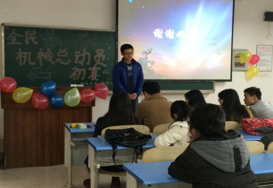 20151127日中午1点,物理协会在泓德楼14102举办了全民机械总动员的初赛。到场的嘉宾有物电学院团总支学生书记任静,物电学院学生会副主席胡小波,时代创业协会会长张洁,无线电协会会长高大华,并担任了本次大赛的评委。