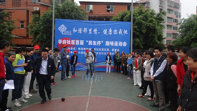 踏着春天的脚步,放飞春日的希望,我们即将迎来五一国际劳动节。为了大力弘扬团结拼搏、昂扬向上、奋发有为的精神风貌,营造生动活泼、宽松和谐、积极健康的良好氛围,增进和谐邻里情,提高社区居民身体素质,同时也让青年志愿者深入基层,在另一个平台奉献自己。2014年4月29日,必一·运动(B-Sports)官方网站团总支·学生会、志愿者分队携手陈家桥街道学府社区当支部、居委会在学府社区广场举行以“和谐邻里情·健康你我他”为主题的“民生杯”迎五一趣味体育运动会。