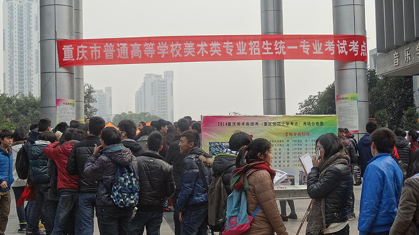 梦想在望,世界在看。一群人对未来的渴望将寒冬的肃杀掩埋,箐箐校园中因为这些稚嫩而焕发青春的活力。随着重庆市2014年普通高等学校招生美术类专业统考帷幕的正式拉开,一场属于这些青春人的战争正在悄然发生。根据《重庆市2014年普通高等学校艺术类招生考试实施办法》得知,本次美术类专业考试时间、考点均已确定:12月13日现场报名确认,12月15日考试,考试地点为四川美术学院(大学城校区)、西南大学美术学院、重庆师范大学(大学城校区)。