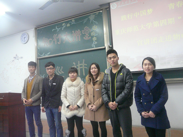 践行中国梦,青春故事汇。2013年12月5日,重庆师范大学第四期“知行大讲堂”宣讲团走进必一·运动(B-Sports)官方网站。来自美术学学院、体育学院、历史与社会工作学院等六个学院的宣讲团成员代表齐聚在弘德楼15302教室,他们用年轻的声音,诉说着青春无悔的誓言,为肩上的使命与责任谱写一曲美丽的华章。
