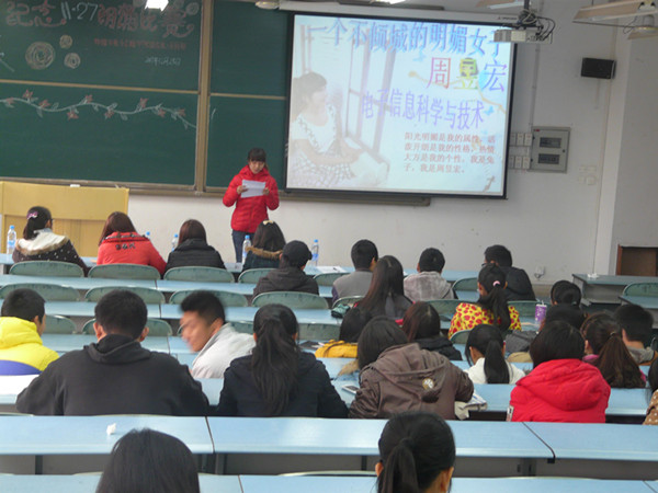 血的记忆让人铭记, 此次主题活动主要围绕重庆“11.27”大屠杀展开。活动开始,马列部副部长沈萍向同学们介绍了11·27惨案的背景及相关知识。她讲到,此次的纪念活动并不只是单单的朗诵比赛,而是要通过朗诵这样的新形式让大家体会革命先辈们不屈的民族精神,更加清楚地明白现在美好、和谐生活的来之不易,学会珍惜今天的美好生活。