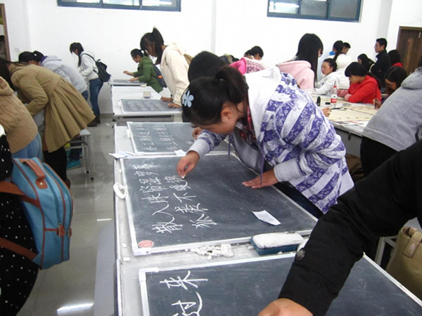 一草一木争春俏,一纸一笔绘华章。为展现汉字的魅力,营造书香校园,提高同学们对师范生技能之三笔字的重视程度,重庆师范大学书法协会和书画协会于2013年11月22日在19505和19504教室联合举办了三笔字大赛。本次比赛分为三个组:钢笔、毛笔、粉笔。