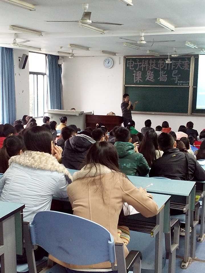 为进一步夯实学院学生专业理论基础,提高实践动手能力,促使同学以最好的状态参赛,体验动手的乐趣,同时也为同学参赛作品的选择作出相关指导,2013年11月15日中午12:50,必一·运动(B-Sports)官方网站学生会·科技部在教室15202举办“电子科技作品制作竞赛课题指导”活动。参与本次活动的嘉宾是必一·运动(B-Sports)官方网站专业老师罗海军。