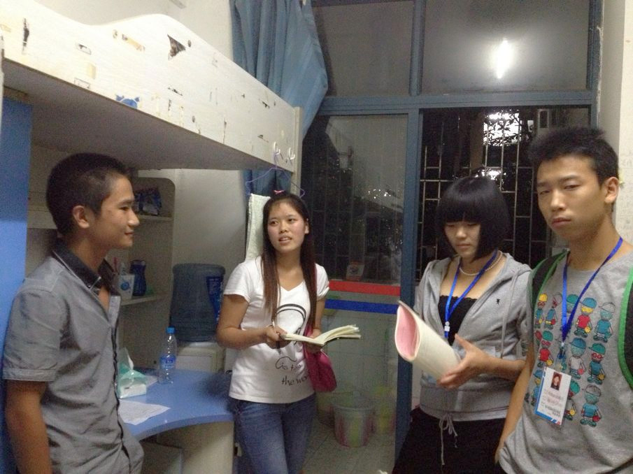 然后,大家从办公室出发,兵分三路前往2013级新生的寝室开展“送温暖、传递正能量”的活动,其目的主要是面对面地帮助新生们解决开学以来遇到的各种困难。来到寝室,大家与学弟学妹们交谈甚欢。许多新生表示,大学生活模式与高中相差甚远,现在他们都还没有及时调整好自己的心态以应对今后的生活和学习……字里行间流露出迷茫与无措。学生会的同学们听了都热心地帮他们解疑答惑。他们总结以往的学习经验,与大一的同学分享自己的成功秘诀;回首曾经的稚嫩懵懂,为大一的同学指点迷津;展望美好未来,跟大一的同学畅谈心声。在这次简单的交流中,在温暖的寝室气氛中,每个人都跨越了年级的极限,彼此之间聆听、沟通。高等数学、线性代数、英语四级、社团活动、班级荣誉等等问题贯穿学习与生活,无时无刻困扰着这一群刚入象牙塔的孩子们。“怎样合理安排社团活动、学生活动和学习时间”、“怎样才会将大学生活过得充实”……每个人都拥有一颗进取的心。
