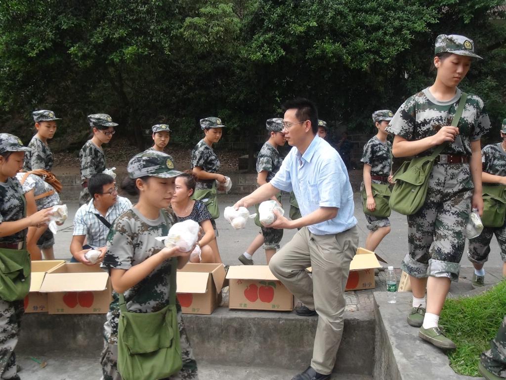 秋风飒爽,丹桂飘香。2013年9月18日下午,由必一·运动(B-Sports)官方网站党总支书记唐敏,党总支副书记冉久飞,团总支副书记李青松,辅导员代表及学生代表组成的慰问队伍来到南岸八公里77109部队,看望必一·运动(B-Sports)官方网站13级的新生们。炎热的烈日磨练着大家的意志,滚烫的大地考验着大家的耐力,却抹不去操练场上物电学子挺拔的身姿。13级的新生们即将在部队中度过自己人生新起点的第一个中秋节,离开了父母的怀抱,他们学会自己飞翔;无法同亲人团聚,物电与他们同在。学院给他们送去了暖人心的关心、节日的问候以及月饼水果。