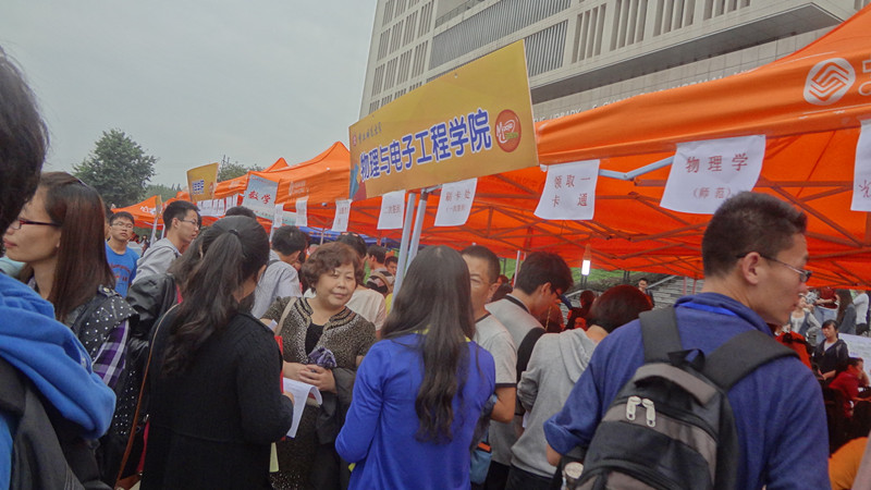 今天是迎新工作的第一天,为了迎接新工作的顺利进行,物电学院的学生干部及志愿者们不辞辛苦,风雨兼程,齐心协力,无论是迎新的策划与动员,绘制展板和海报,还是冒雨搬运物资等等,无一不展示了物电学院的风采。志愿者们细致地帮家长们看管行李,还是耐心的等待学弟学妹,拿物资,走流程,迎新工作顺利高效地进行着,这一切的一切都是志愿者们的无私付出,更是学生工作专业,考虑周全的写照,家长们对志愿者赞不绝口,同时志愿者们亲切的笑容更让新生们感受到了家的温暖。