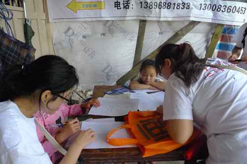 太阳在不知不觉中慢慢的显露了它的威力,但是火热的太阳不及志愿者火一样的热情,更不能把小朋友们对知识的渴求减弱,在温馨快乐的氛围里,大木乡的风吹拂着我们火红的旗帜,飘扬的不仅是志愿者对小朋友的引导、鼓励和爱,更是对青春和梦想最好的诠释!热气渐渐逼近,小朋友们仍然依依不舍,从他们坚韧的眼神中我们看到了他们对知识的渴望,更仿佛看到了他们心中那一份份梦想。在把小朋友送回去的路上他们还在不停的询问“老师,我们明天可不可以再来。”志愿者们带来的不仅有知识,更有他们的爱心,他们对这个社会拥有的责任感。