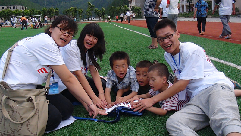 下午19:00,伴着凉凉的晚风,队员们挥舞着队旗来到乡上乡民们傍晚集中娱乐的活动场所——足球场进行活动开展的宣传工作。这一次的主要工作是先对大木乡聚居的乡民人数进行估计,向乡民宣传明天在乡政府即将开展的“小桔灯”爱心家教服务和家电维修服务。为了吸引家长与朋友们的眼光,大家在足球场上做起了简单的小游戏。随着时间的流逝,小朋友们不再对大家那么陌生而是参与进来一同玩耍。最后,大家约定好准时参加明天在乡政府会议室的家教活动。在此次出行中,队员分成各个小组并指定出带队组长,有的小组拿上相机记录下每一个动人的瞬间,有的小组带上问卷调查表进行主题调查活动,有的小组则向居民讲解此次队伍的活动目的、意义并邀请他们积极参与。