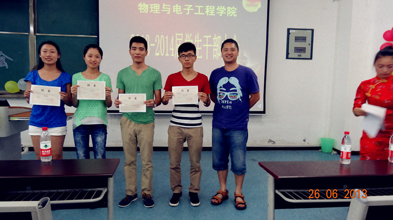 一张张承载过去一年熟悉回忆的照片在视频中滚现,回首过去,展望未来,千言万语道不尽对“家”的依恋与不舍。继去年工作总结的视频播出后,上一届学生会主席张磊代表大家发言,他在感激大家庭为全院学生带来的服务和温暖的同时,也表达了对新一届干部成员创造新成绩的希望。随后,辅导员老师们为2012-2013届团总支·学生会干部颁发聘书,为优秀干事颁发证书。接着,李老师向大家公布新成员名单,大家在一阵阵鼓掌声中认识了一批新朋友。