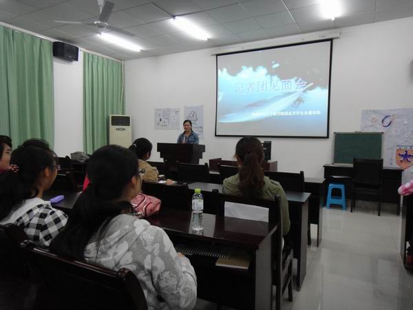 首先,黄部长向大家简单介绍了通讯部记者团的整体策划及未来的发展;然后院学生会主席张磊发表个人对记者团的希望,接着,通讯部干事代表发言,表达自己进入通讯部的工作规划,最后,黄部长进行了一个特色的自我介绍仪式,让同学们消除上台讲话的恐惧,并宣布了记者团及干事培训班的开班。