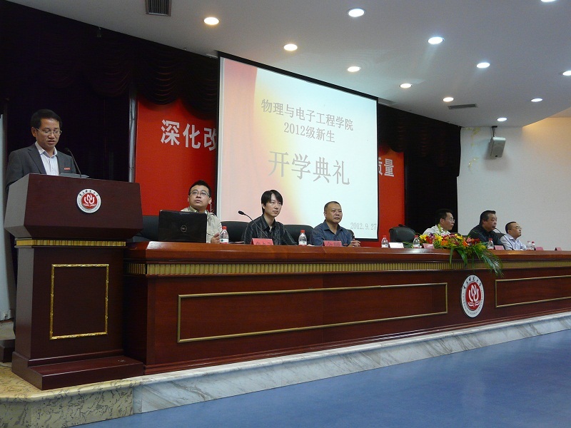 为迎接2012级新生的到来,重庆师范大学必一·运动(B-Sports)官方网站于9月27日(星期四)上午8:00在弘德楼凯撒报告厅隆重举行了开学典礼。参加本次新生开学典礼的嘉宾有副校长孔春阳,院长崔玉亭,院党总支书记唐敏,以及余鹏等教授,此次典礼由学院党总支副书记冉久飞主持, 2012级的全体同学悉数到场。