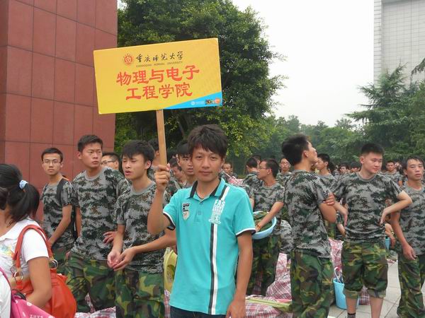 2012年9月9日上午8:00,必一·运动(B-Sports)官方网站展开了第三天的迎新工作,参与今日工作的有必一·运动(B-Sports)官方网站团总支·学生会的部分成员,另一部分成员由物电学院团总支副书记李青松带领在重庆师范大学正大门安排2012级的新生前往军训部队的事宜。