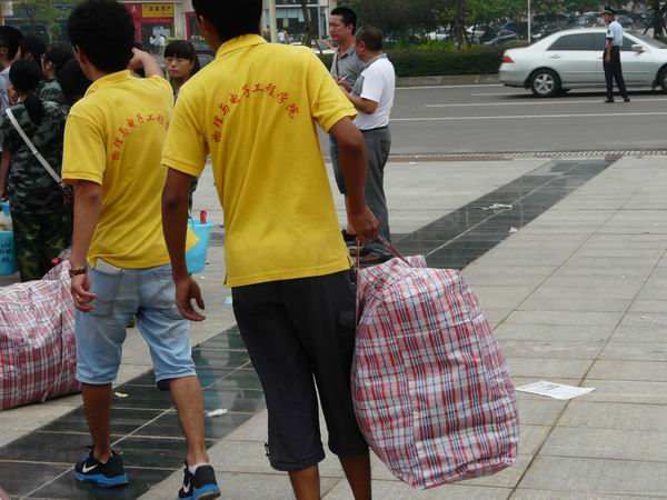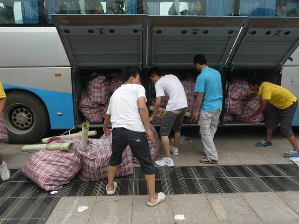 物电学院学生会的成员们除了维持现场的秩序,还帮助新生们把行李搬到车上,正午天气炎热,但挡不住成员们高涨的做事热情,任凭汗水打湿了衣衫,任凭饥饿感充斥着全身,大家一直坚持到将完全学弟学妹们送上校车后,场面甚是动人。
