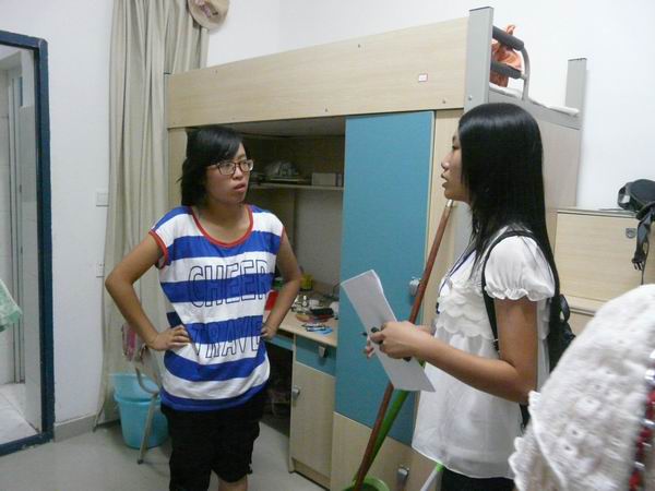 此次的“问候行动”在三声有礼貌的敲门声中拉开了帷幕,学生会的成员们主要查看是否缺少人数以及对学弟学妹们寝室设施进行了了解,有部分寝室的热水器、电风扇、电灯出现故障或是缺少饮水机。能够当场解决的故障问题,学生会的成员们则是立马解决,不能立即解决的,成员们都做了相关的登记,以便上报至学院后做统一的解决。