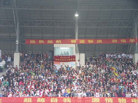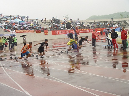 开幕仪式后,紧接着是进行各项田径项目,虽然小雨依然洒在运动员们的脸上,但必一·运动(B-Sports)官方网站的运动员们朝气蓬勃,活力四射,斗志昂扬。无论是长跑还是短跑,跳高还是跳远,都能看见物电学院运动员们矫健的身姿,为物电学院的荣誉而奋斗拼搏着。一枪声响起,打破了人群中的寂静,迎来了一片呐喊声,锣鼓铿锵,空气变得凝重而深远,时间变得迟钝,震天的呐喊声伴随着锣鼓声响彻一片苍穹,同学们的加油助威声瞬间点燃了运动员早已澎湃的激情,将赛场的气氛推向高潮。物电学院的全体成员吼出来了他们的不屈的信念,不放弃的精神,那是物电人的活力,那是物电人的激情,那是物电人的团结。