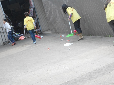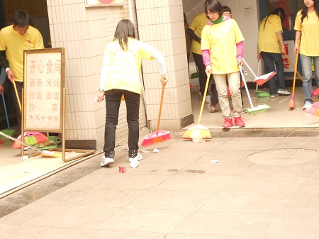 打扫完弘德楼后,同学们依旧士气高昂,在大家的商讨下,决定继续去打扫和风苑商业街。平时同学们去商业街都是吃吃玩玩,别人为我们服务,但这次不一样,我们是青年志愿者。在同学们高昂的士气带动下,我们圆满的完成了商业街的打扫。最后,所有同学在弘德楼广场上合影,为青春,为纪念雷锋同志留念。