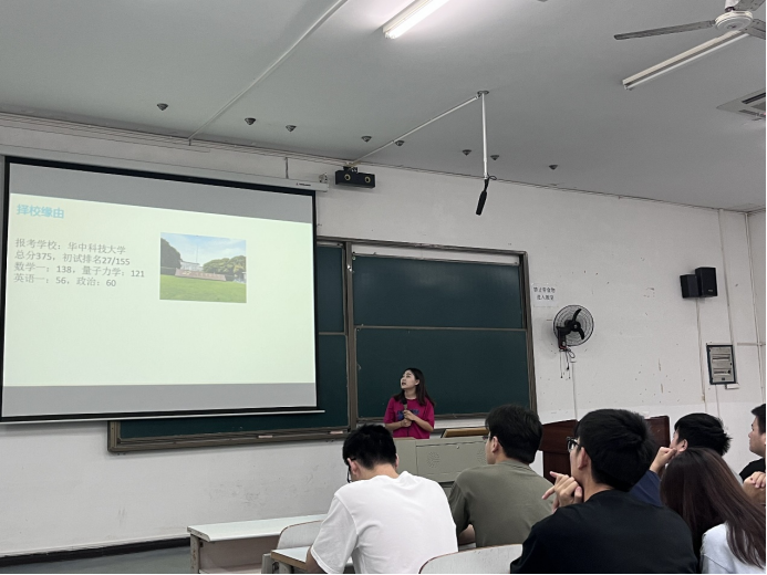 她说:每个同学都会有专属的大学轨迹,最重要是沿着自己的既定道路不断前行,途中处理好学生干部、实验室经历以及个人学习的关系,随时调整状态,以最好的面貌面对生活。