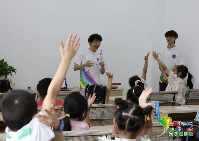 图为志愿者向小朋友提问。中国青年网通讯员 周江 供图