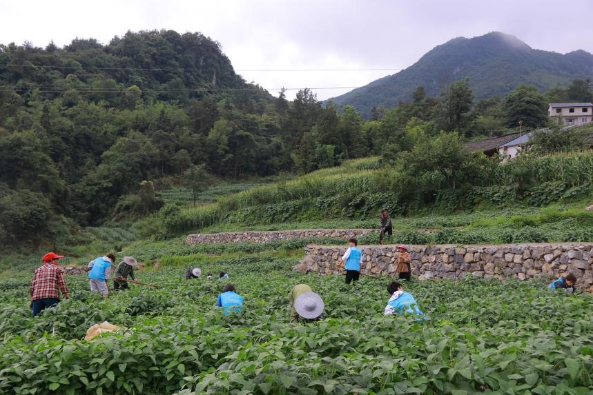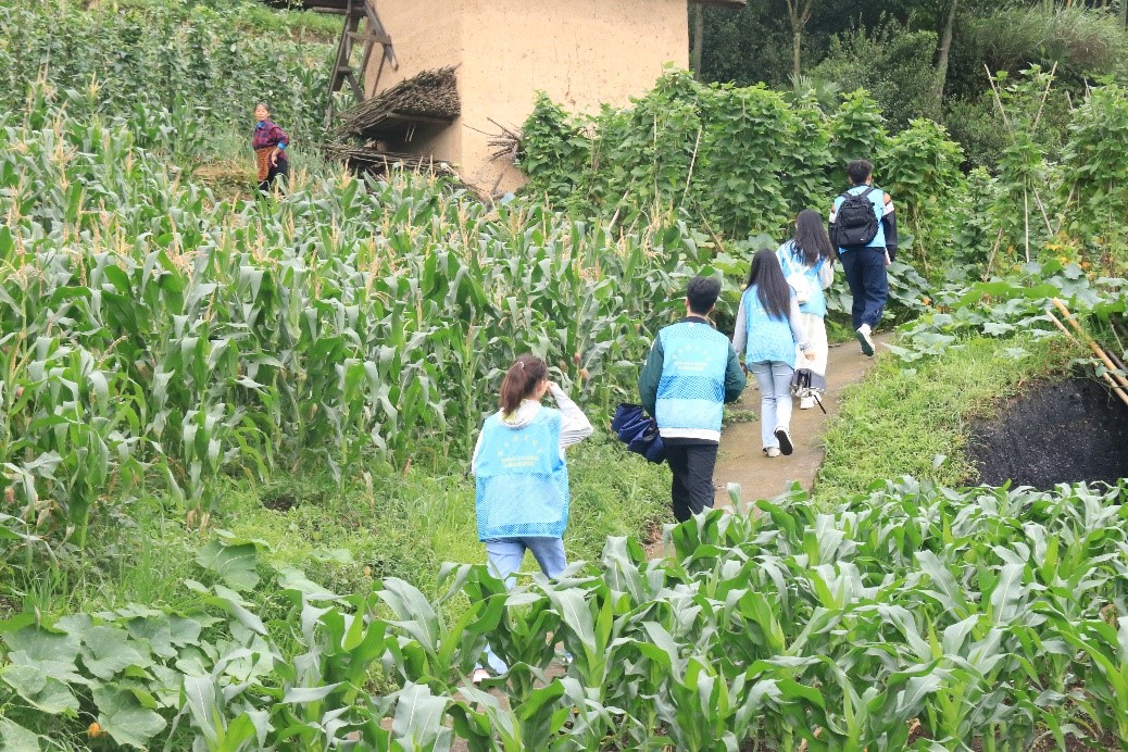 随后,实践队联系到万隆村带富能力强的村民,前往种植基地,了解学习“糯玉米”产业种植技术。在前往过程中,由于雨天路滑、山路陡峭,实践队员都是互相搀扶前行,经过四十多分钟的山路,到达了期盼已久的种植基地,见到了当地“糯玉米”种植大户。