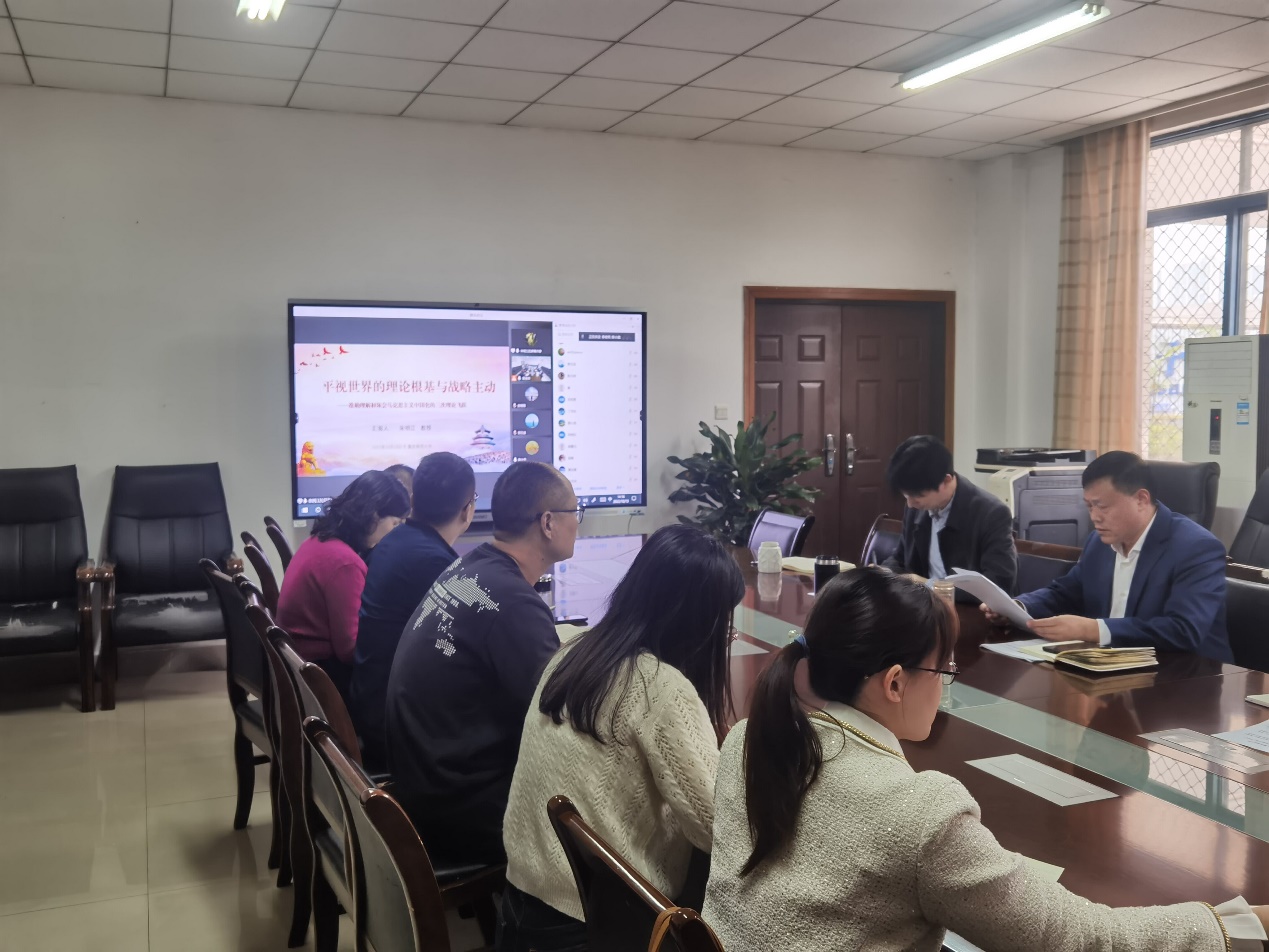2022年10月13日下午,必一·运动(B-Sports)官方网站党委采取线上线下相结合方式组织了思想政治教育活动。本次学习邀请了市委宣讲团成员、重庆工商大学马克思主义学院党委书记宋明江教授,为物电学院全体教职工带来了题为“平视世界的理论根基与战略主动”专题辅导报告,学院全体教职工参加了学习讲座,本次学习活动由学院党委书记杨云主持。