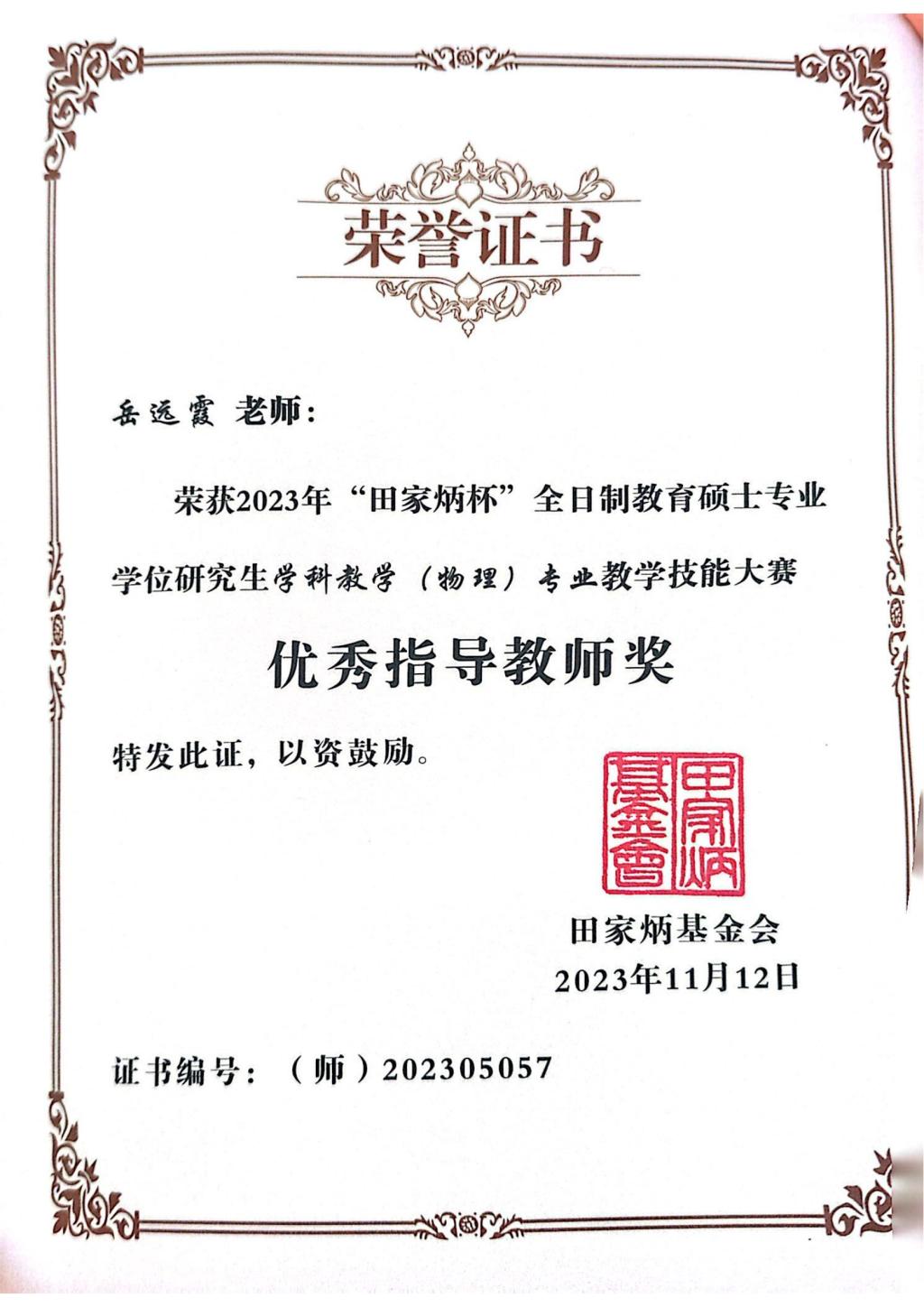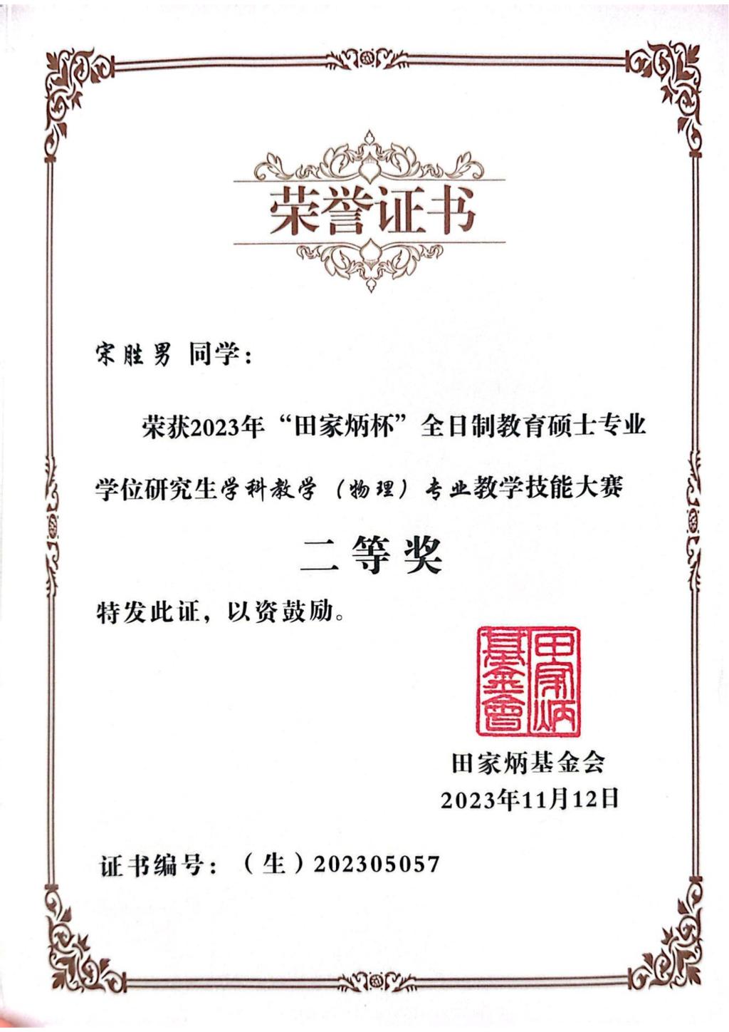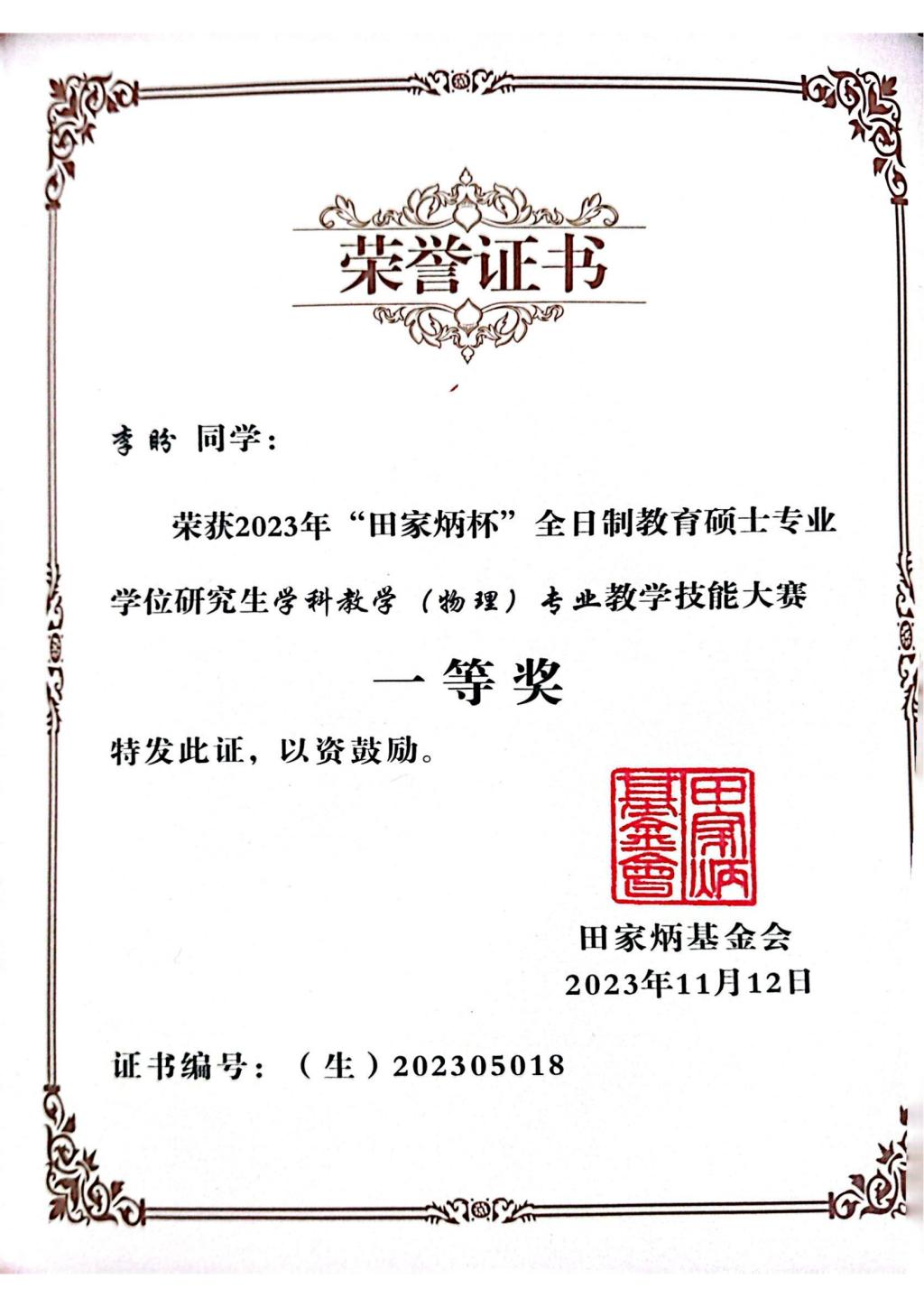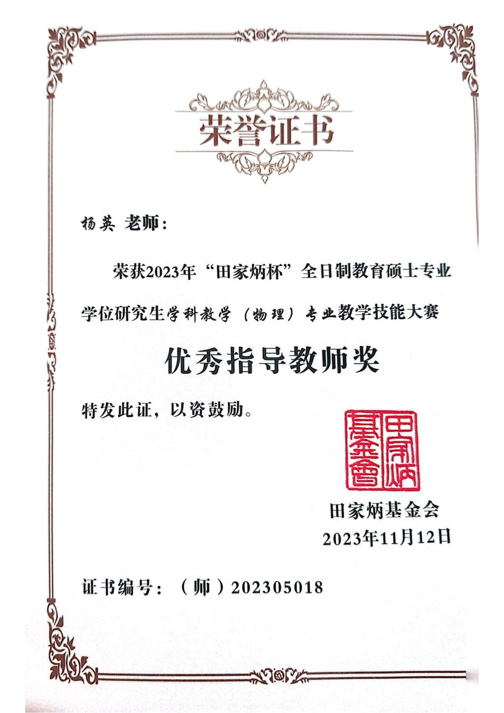 此次比赛由全国教育专业学位研究生教育指导委员会指导、“田家炳”基金会支持、四川师范大学承办,共有来自包括教育部直属六所师范院校在内的79所院校309名学生参加,其中68所院校的182名选手进入决赛。通过现场模拟教学和答辩,必一·运动(B-Sports)官方网站2022级学科教学(物理)专业硕士李盼、宋胜男分别荣获“一等奖”“二等奖”;杨英和岳远霞两位老师获得“优秀指导教师奖”。